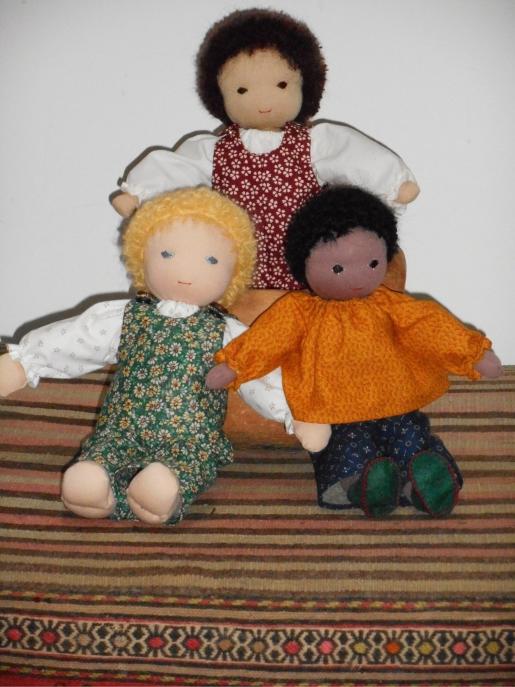 Since time immemorial children are playing with dolls, simple dolls an adult would make from cloth, or scraps of cloth. Nowadays we have mass production of plastic dolls and no one needs to go to the trouble anymore to make a doll by oneself. One goes and simply buys it. Only, a bought doll has been produced by strangers and machines, somewhere far away from the child’s home. No one, while making the doll was thinking of the child that would eventually receive it.